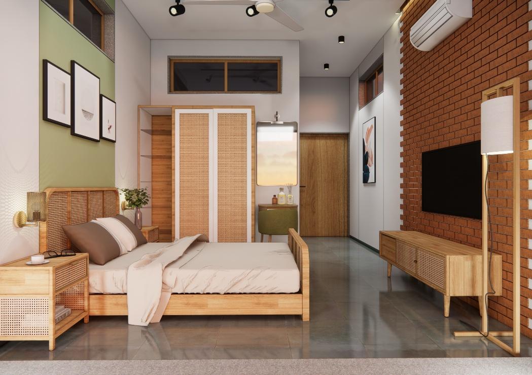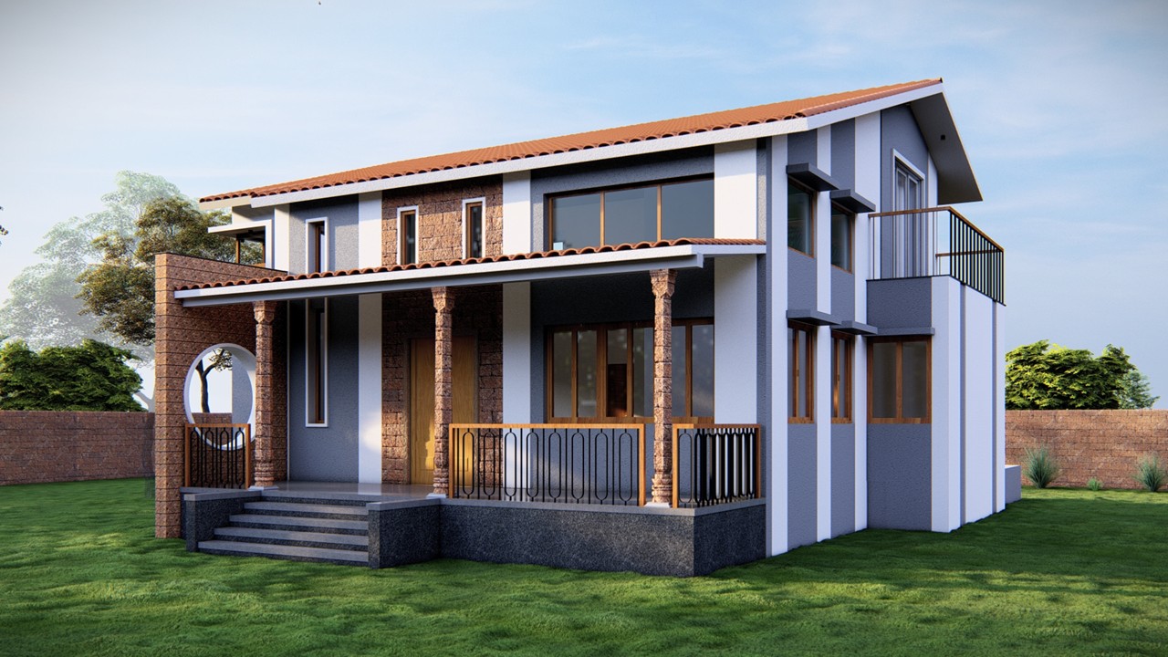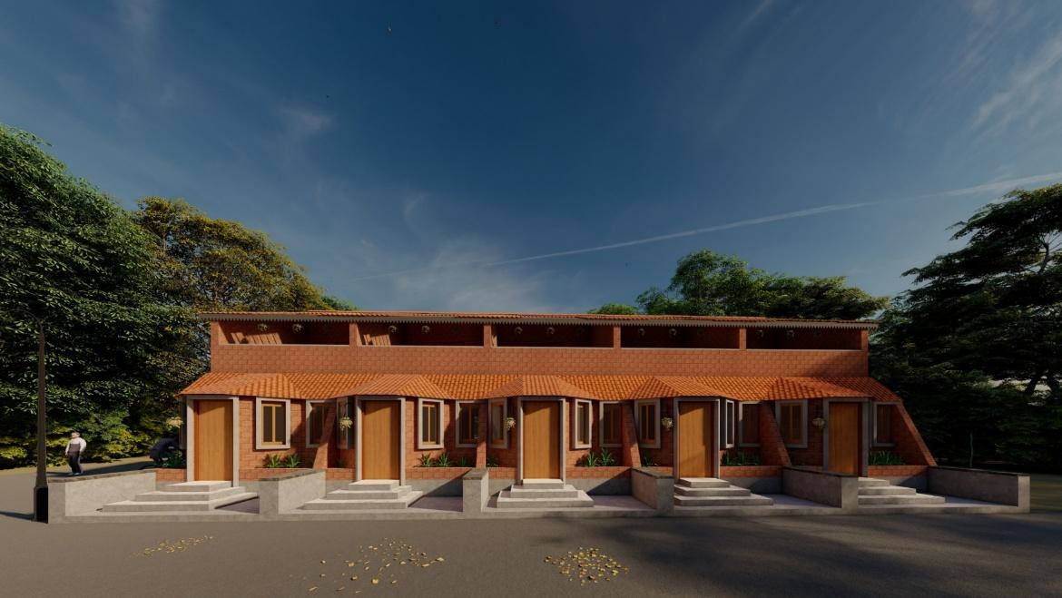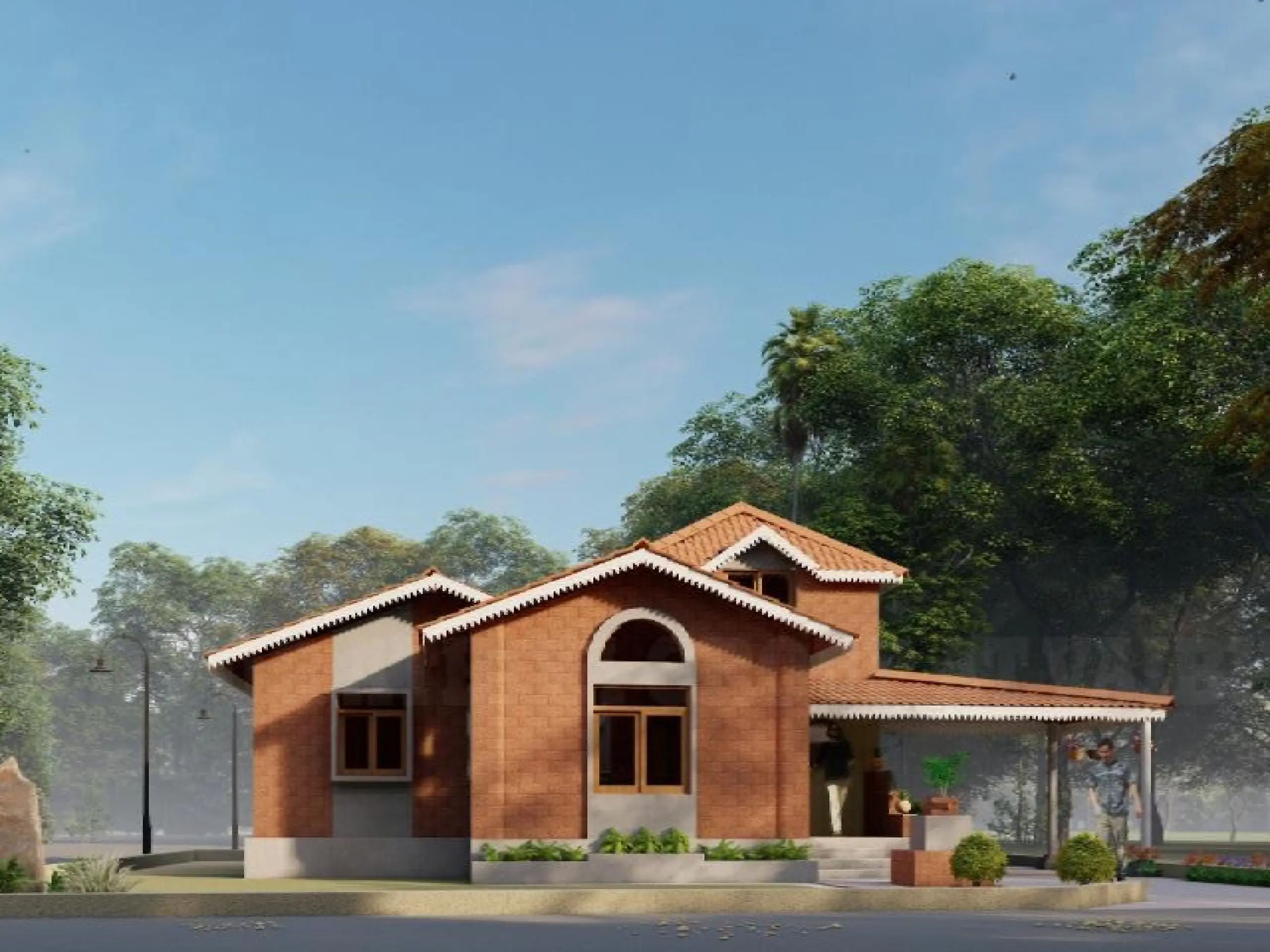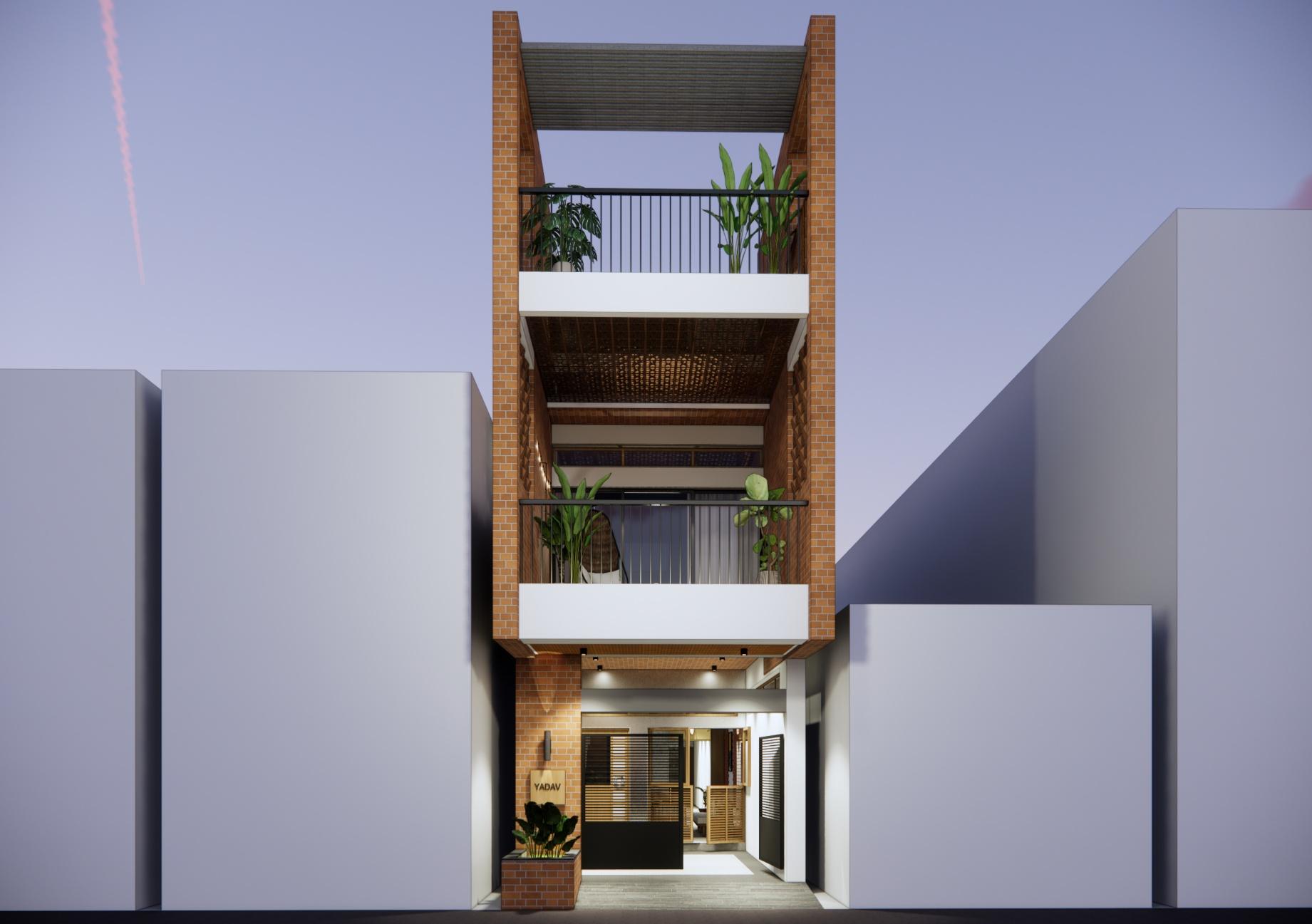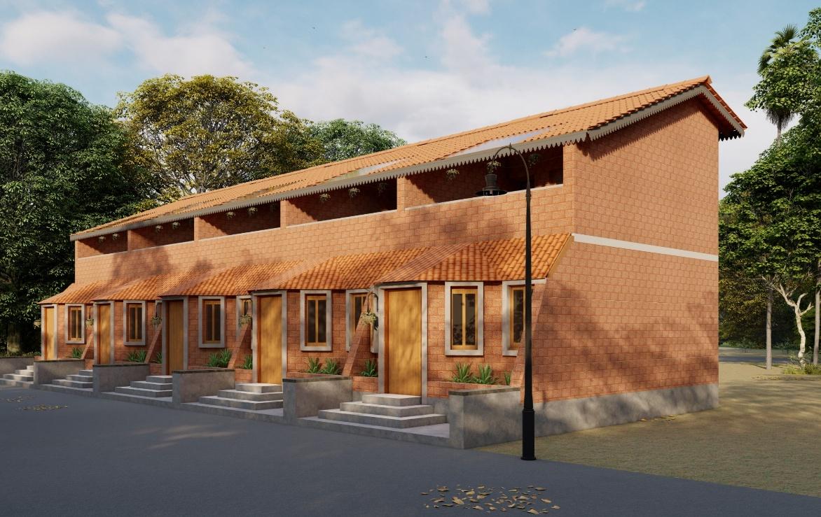 This bungalow is thoughtfully designed to reflect the essence of its local context, incorporating indigenous materials and traditional construction techniques. The architectural form draws inspiration from the surrounding vernacular homes, reinterpreted with a contemporary touch through a modern façade. The planning of the residence adheres to Vastu Shastra principles, ensuring spatial harmony and a balanced flow of energy throughout the home. By blending local character with modern sensibilities, the design achieves a timeless expression that resonates with its environment while standing out through its refined architectural language.