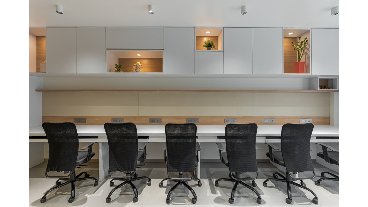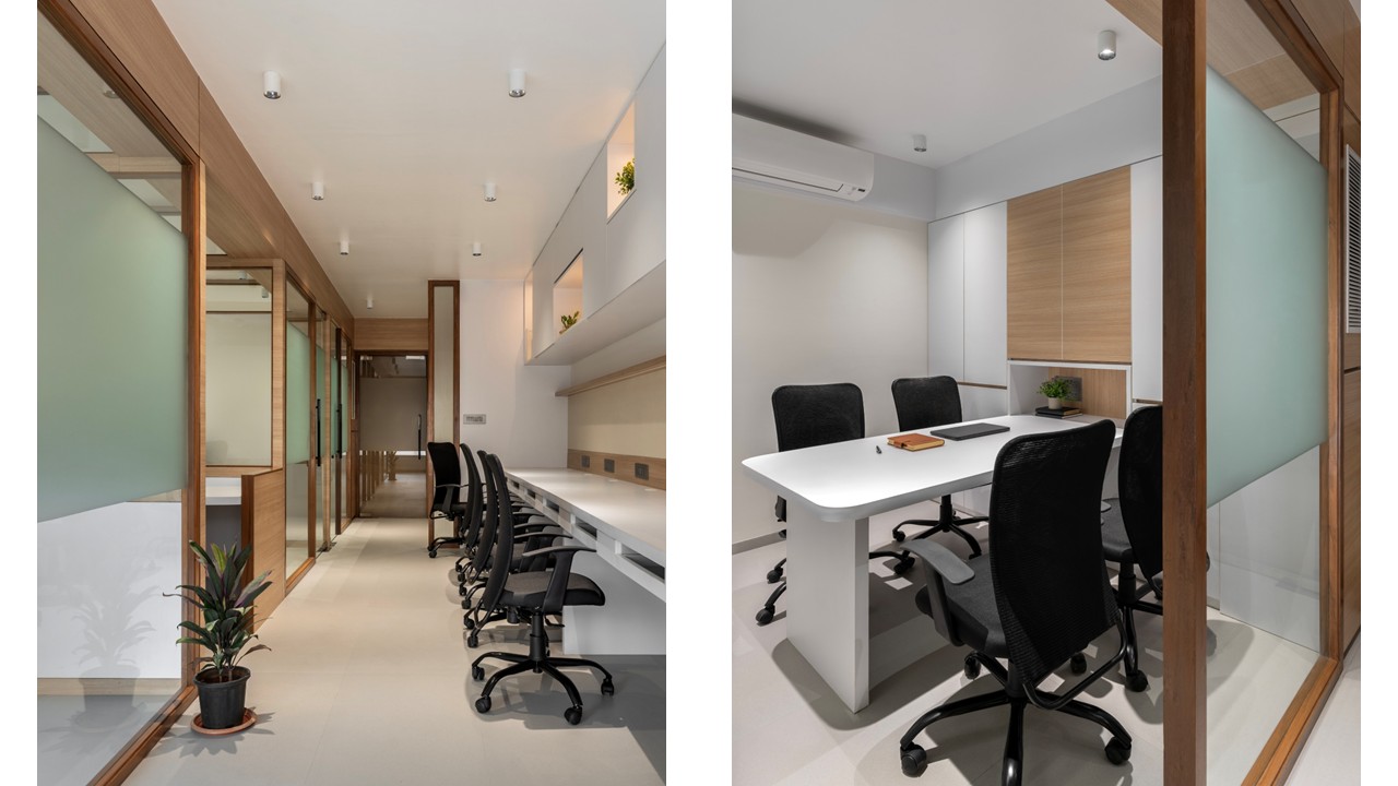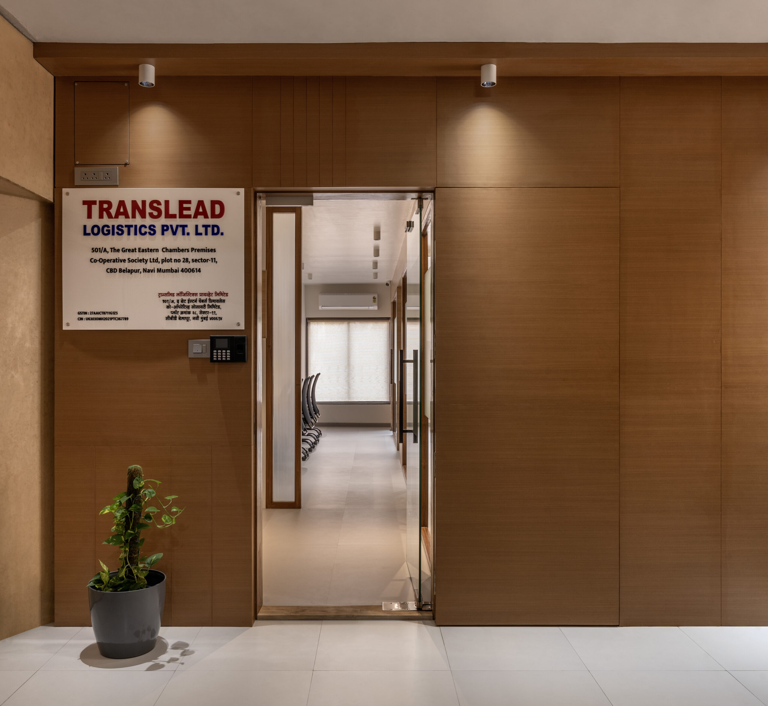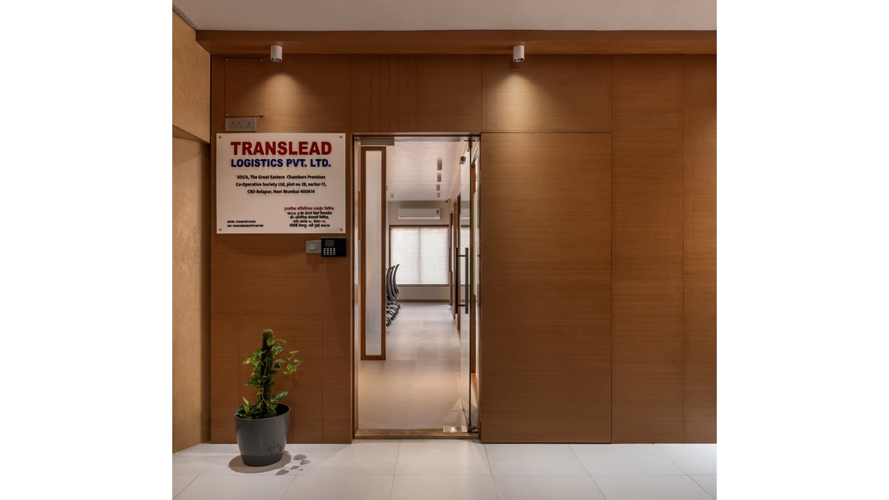 The Translead Logistics Office is thoughtfully designed to prioritize budget-conscious solutions, low maintenance, and efficient spatial planning.Embracing a minimalist aesthetic, the design achieves a clean, modern, and professional atmosphere while aligning with the practical needs of a fast-paced workplace.Spaces are strategically zoned to optimize natural light distribution, fostering a healthy and uplifting work environment.The integration of daylight not only enhances visual comfort but also supports the well-being and productivity of the team.Overhead storage units above workstations are conceptualized as a composition of solids and voids, offering a lighter and more refined visual alternative to traditional shuttered cabinets.This approach ensures both functionality and aesthetic balance without adding visual weight to the space.The material palette features crisp white surfaces, natural wooden tones, and light grey floor tiles, creating a subtle and composed workspace.These elements together establish a calm, focused environment that encourages clarity and efficiency in day-to-day operations.