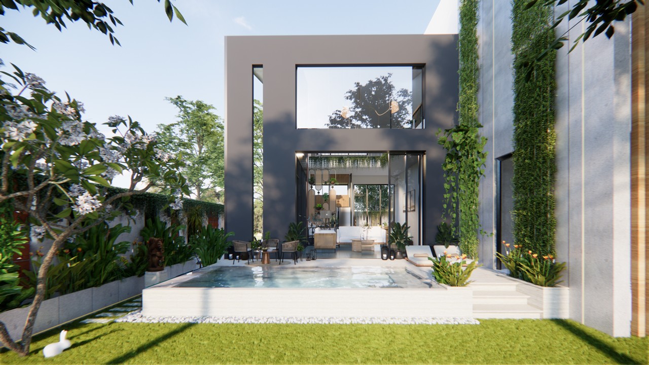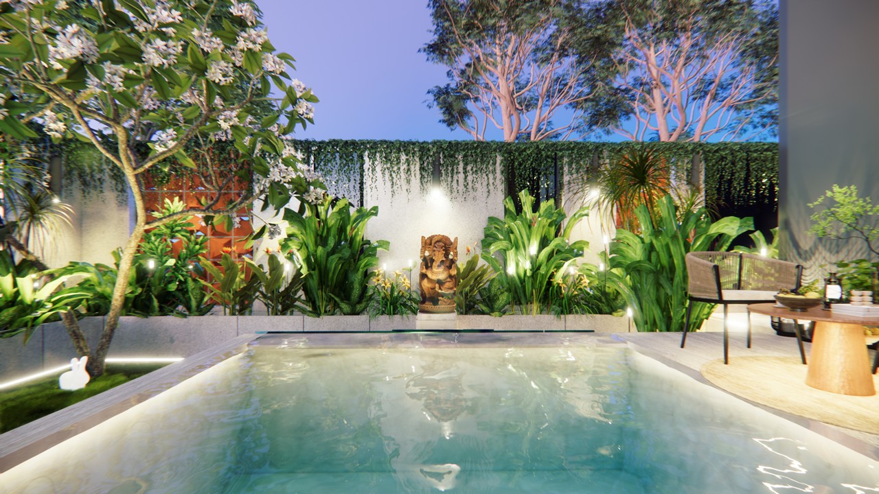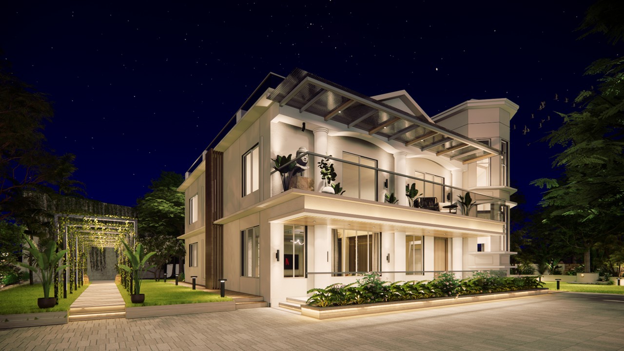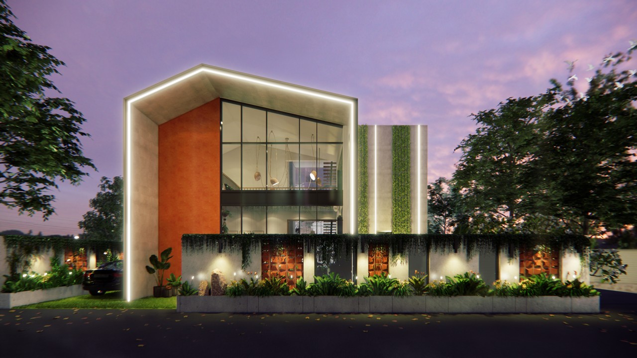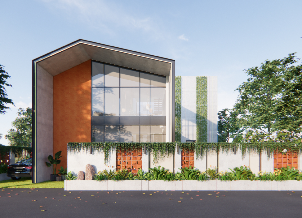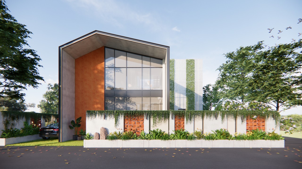Nestled in the lush green environs of Lonavala, this bespoke villa embodies the essence of a biophilic retreat—offering an escape from urban density into a sanctuary of tranquility and natural luxury.The architectural form draws inspiration from the surrounding mountainous terrain, with a distinctive angular roofline and volumetric expression that echoes the silhouettes of nearby peaks.Conceived as a standalone, self-sufficient dwelling, the villa integrates three bedrooms, a private swimming pool, and expansive landscaped zones to foster a seamless indoor-outdoor living experience.The design prioritizes a biophilic approach, with natural light, ventilation, and vegetation intricately woven into the spatial planning and material palette.The exterior is composed of an earthy material palette—raw concrete, terracotta stucco, and vertical green walls—that grounds the structure within its natural context. Minimalist in its interior expression, the design leverages warm, tactile finishes and organic textures to create a calming and grounded ambiance.The swimming pool serves both as a visual and sensory anchor—strategically placed to offer moments of repose and rejuvenation, while its gentle soundscape enhances the overall meditative quality of the space.The architecture responds to the growing trend of luxury villa rentals by offering a unique identity and experience-driven design, optimized for both short-term leisure and long-term comfort.