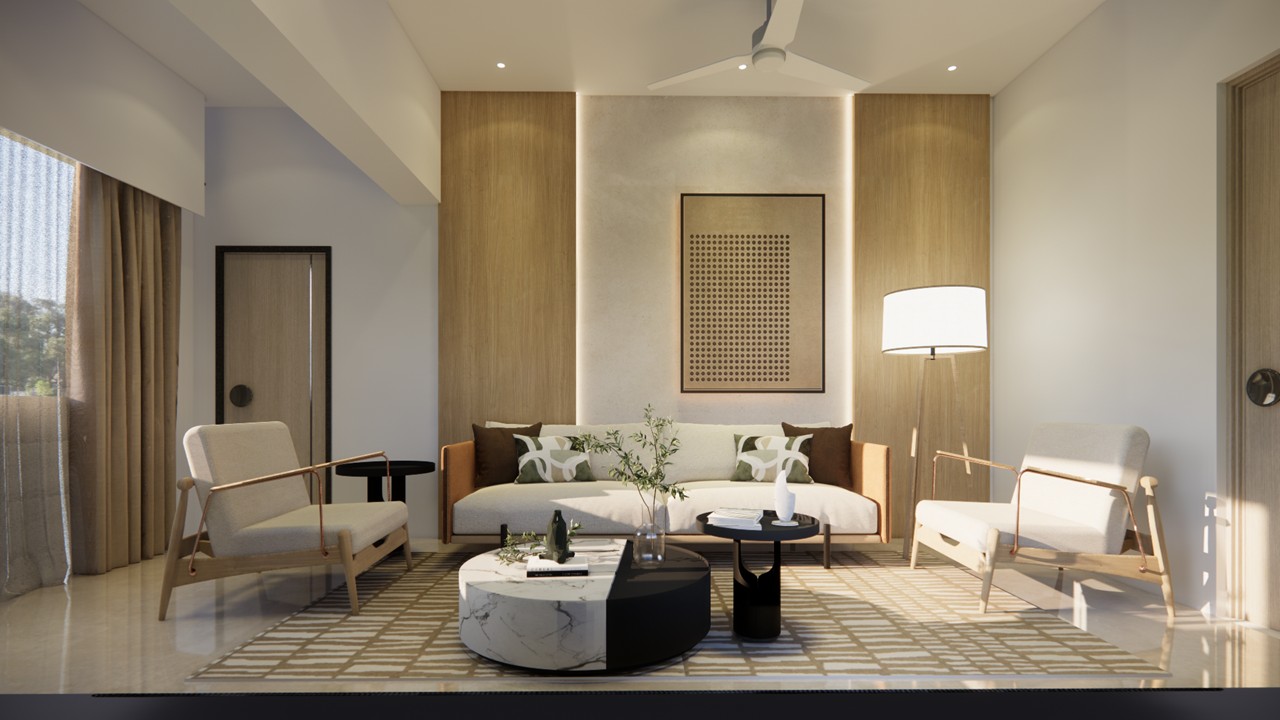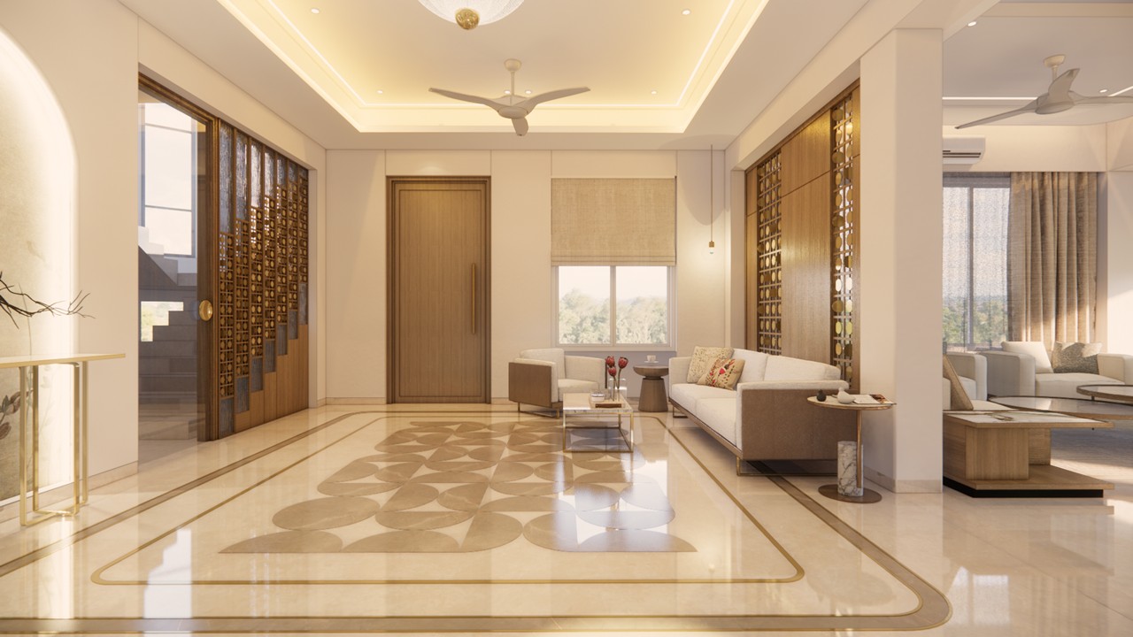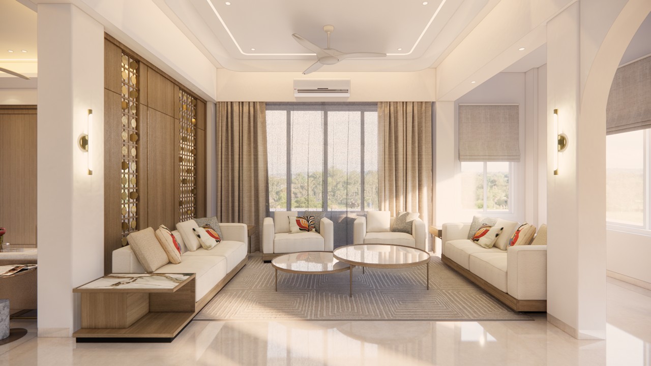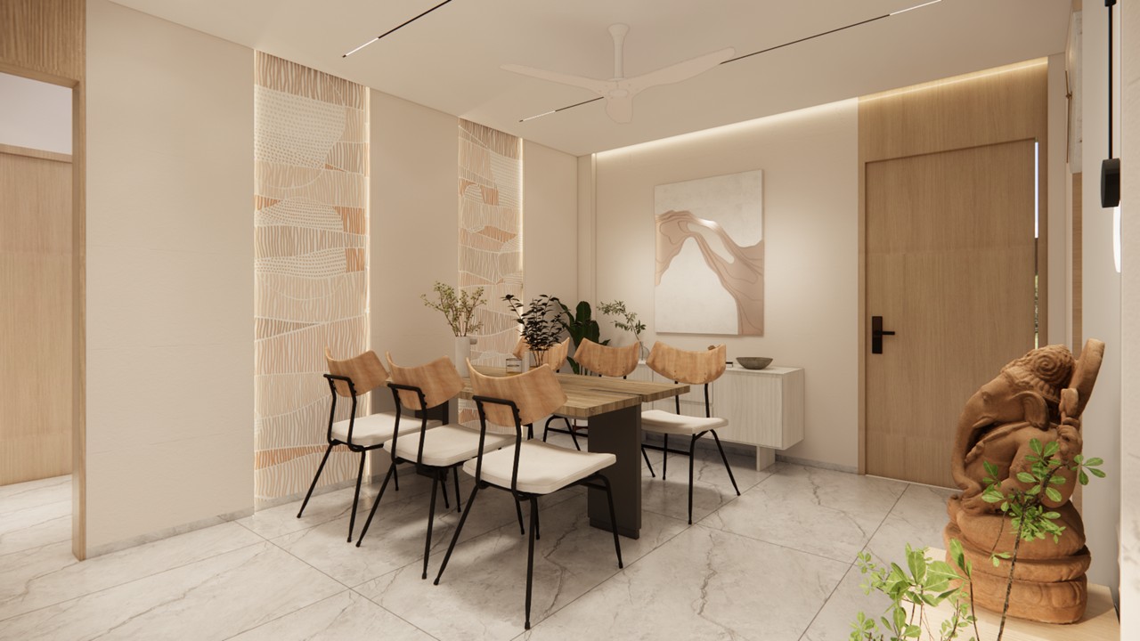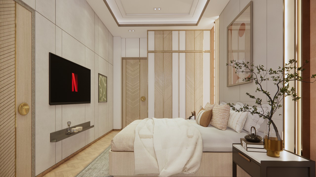 This bungalow interior is a celebration of calm sophistication, where every design element is thoughtfully curated to enhance both visual harmony and everyday living. The aesthetic language is sober and soothing, built on a carefully chosen palette of white, warm wood, muted beige, and soft gold accents. These materials work together to evoke a serene and timeless elegance that feels both luxurious and grounded.Rather than overwhelming the space with bold colors or excessive ornamentation, the design uses restraint to elevate its impact. Furniture pieces are selected not only for comfort but also for their ability to punctuate the interiors with subtle contrast—acting as visual highlights that bring definition and rhythm to the rooms.Natural light, clean lines, and seamless spatial flow ensure a breathable and balanced environment. Every corner is optimized for comfort and quiet sophistication, offering residents a space that is as emotionally calming as it is visually refined.This home stands as an example of how luxury can be quiet, deeply personal, and powerfully enduring—found in the textures, tones, and thoughtful pauses of everyday living.