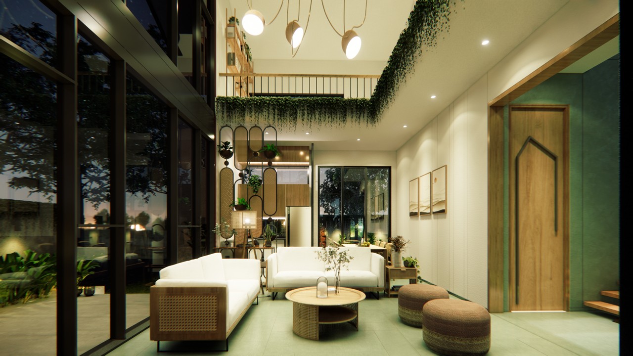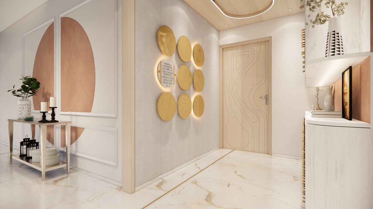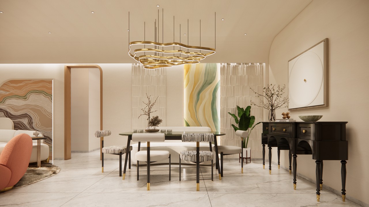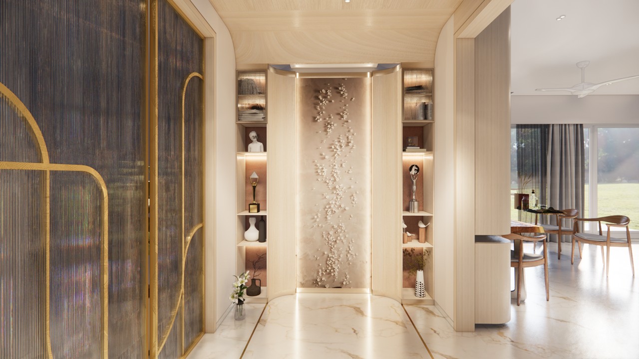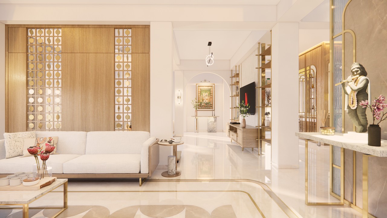 This bungalow interior is a celebration of calm sophistication, where every design element is thoughtfully curated to enhance both visual harmony and everyday living. The aesthetic language is sober and soothing, built on a carefully chosen palette of white, warm wood, muted beige, and soft gold accents. These materials work together to evoke a serene and timeless elegance that feels both luxurious and grounded.Rather than overwhelming the space with bold colors or excessive ornamentation, the design uses restraint to elevate its impact. Furniture pieces are selected not only for comfort but also for their ability to punctuate the interiors with subtle contrast—acting as visual highlights that bring definition and rhythm to the rooms.Natural light, clean lines, and seamless spatial flow ensure a breathable and balanced environment. Every corner is optimized for comfort and quiet sophistication, offering residents a space that is as emotionally calming as it is visually refined.This home stands as an example of how luxury can be quiet, deeply personal, and powerfully enduring—found in the textures, tones, and thoughtful pauses of everyday living.